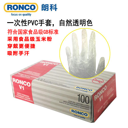 朗科一次性有粉透明PVC手套V1